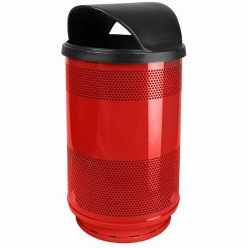 Stadium Series, 55 gallon perforated steel receptacle with a dome lid. Comes standard with a rigid plastic liner, leveling feet and lid attachment kit. Durable TGIC powder-coated paint finish for indoor or outdoor use.