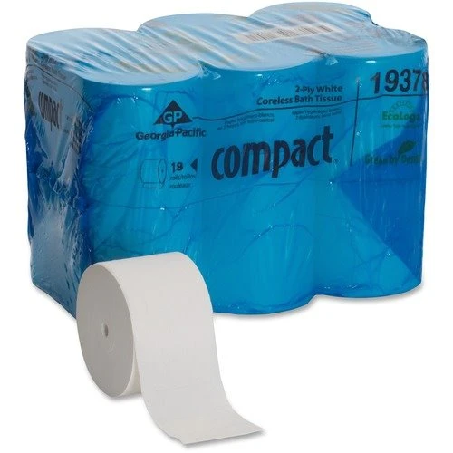 Specifically designed to fit Georgia-Pacific Compact Tissue Dispensers and increase tissue capacity while optimizing storage space, this cost-effective coreless tissue will satisfy all of your customer and employee needs. Compact offers the comfort of two-ply softness with reliable performance you can count on. 100 percent tissue usage helps eliminate stub roll waste and saves you money. High-capacity roll reduces service calls to refill dispensers and reduces the risk of runout.