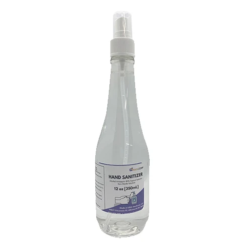 Product Specifications Product Type: Liquid Hand Sanitizer Active Ingredient: 80% Ethanol Color: Clear Capacity (Volume): 12-oz. Packing Type: Mist Spray Bottle Features: Fine mist; efficient, continuous spray pattern; reduces waste Bottle Shape: Keuka Round Bottle Color: Clear Package Quantity: 8 Bottles Returnable: This product is not returnable