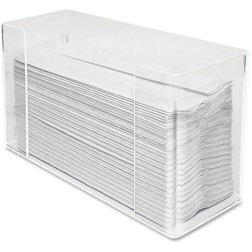 Product Specifications Global Product Type: Towel Dispensers-Multifold Towels Dispensers Type: Folded Towel Dispenser Capacity (text): One Standard Pack of Folded Towels Material(s): Acrylic Color(s): Clear Depth: 4.4″ Height: 7″ Width: 12.5″ For Use With: C-Fold or Multifold Paper Towels Pre-Consumer Recycled Content Percent: 0% Post-Consumer Recycled Content Percent: 0% Total Recycled Content Percent: 0% Return Policy: 60-Days
