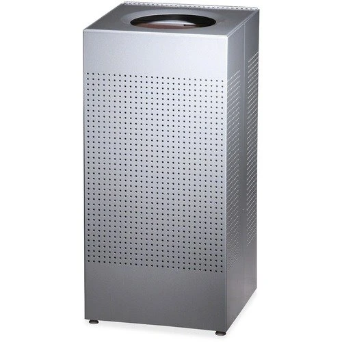 Waste containers don’t need to look trashy. These perforated, heavy-gauge steel square receptacles coincide perfectly with modern design styles. Features metallic Uni-Koat powder-coated finish. Leak-proof rigid plastic liner and folding retainer bands hold bags in place. Fire safe. Hinged top for easy emptying. Leg levelers for stability on uneven surfaces. Waste Receptacle Type: Open Top; Material(s): Steel; Application: General Waste.